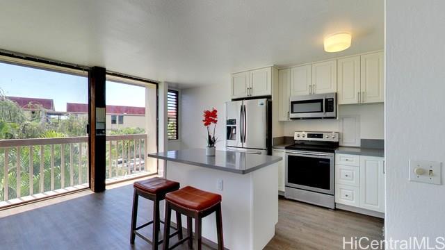 Remodeled in 2018 with so many upgrades, it's a MUST SEE! Be ready to cook in this beautiful kitchen with brand new cabinets, Samsung stainless steel appliances, a large island, and quartz countertops. All new luxury vinyl wood flooring throughout the unit. Completely new bathroom with ceramic tile floors. Appreciate all the amenities that the complex has to offer such as two swimming pools, 24-7 security, a basketball court, a tennis court, and more! Enjoy the valley breezes and the luxury of being only minutes from world famous Makaha Surfing Beach! See Virtual Tour.
