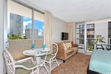 Must See!! Don't miss your chance to own a legal short term vacation rental property in Waikiki. A great investment property for both short term and long term. Great and central location, one block away to the world famous Waikiki beach. A short walking distance to many fun and fine shopping and dining experiences at Royal Hawaiian Shopping Center, International Market Place and many more. This studio unit features a double pane glass sliding floor to ceiling window to significantly reduce outside street noise and one covered parking. This well maintained studio unit is surely a good choice for personal use and investment property. Condo is sold As Is and fully insured. Sunday Open House from 2pm to 5 pm, Feb 2nd , 2025.
