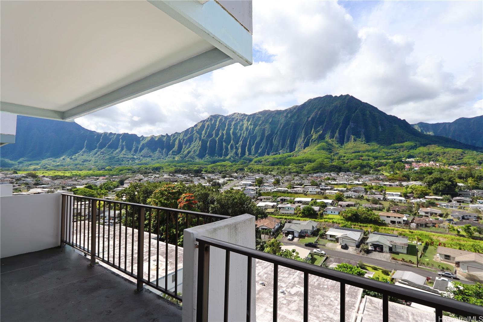 Breezy 3 bedroom in a great location with views of the Ko'olau range from large lanai and living room! Conveniently located near H3, shopping, restaurants, grocery and public transportation. Amenities include secured entry, pool, BBQ area, community laundry, play area and guest parking. 1 assigned, open parking stall and street parking nearby.