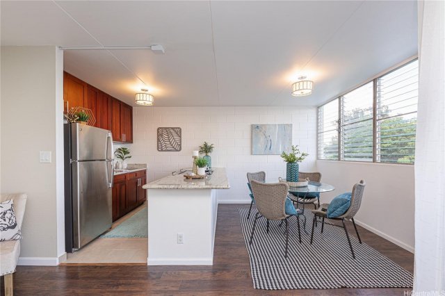 Beautifully remodeled 2 bedroom / 1 bath condo in an incredible location! Check out the video overview! Stunning vinyl flooring throughout main living spaces and bedrooms, updated open-concept kitchen with stainless steel appliances, plenty of space for living room and dining room nook, cute lanai with view of Diamond Head from the distance, bright windows and airflow throughout the condo. Unit comes with dedicated parking stall and options to rent additional stalls. Fantastic location in Mililani convenient to shops, eateries, and H-2 Freeway. Book your private showing today or visit our OPEN HOUSE THIS SUNDAY (12/19) from 2pm to 5pm!