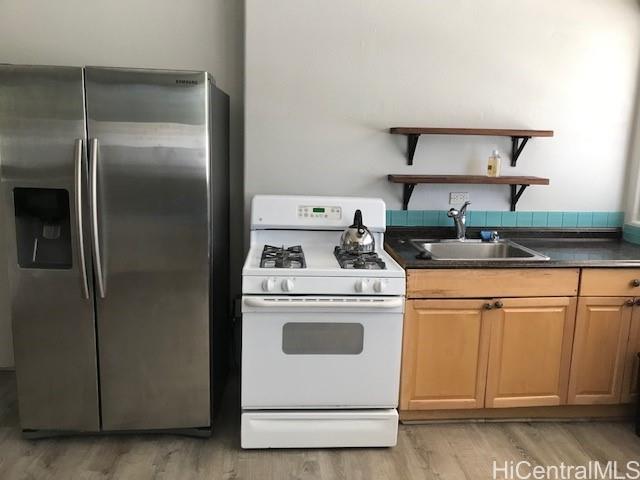 Sunny, cozy, ground floor studio at the entrance of Waikiki. Namahana Terrace is located on a two-way street one block from the Ala Wai Canal. The condo features new flooring, new paint & new bath lighting & medicine cabinet. The unit includes lovely window coverings, which can block light when closed and mirrored walls reflect light when blinds are open. The kitchen features a newer stainless steel refrigerator, gas stove and stainless steel sink. The kitchen walls have space for additional storage shelves or cabinetry. Outside the entrance, there is a small seating area for use by the owner and a coin operated laundry area for residents. For pet lovers, consult condo board for approval of pets under 25 lbs.