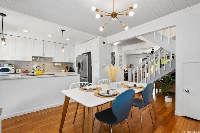 Come see the MODERN RENOVATIONS at this beautiful 3 bed, 2.5 bath, 2 parking townhome in Mililani! This end unit has extra privacy and features an open-concept kitchen with white cabinets, brass accents and stainless-steel appliances. Entertain guests from your spacious living room that leads to a covered patio and private yard, perfect for BBQs! All bedrooms are of a good size and the master bedroom is a true escape w/ large square footage and a barn door leading to a beautifully renovated en-suite. This complex is conveniently located near Mililani Town Center and is PET FRIENDLY!