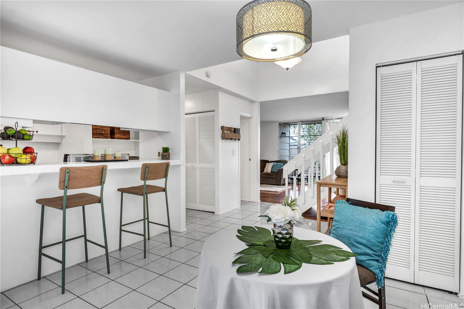 Welcome to Noholoa Hale in Mililani! Enter this charming split level townhouse with 1,320 sq ft of living area with a vibrant garden area that welcomes you. Ground floor includes an inviting dining area, nice functional kitchen that maximizes its space, with ample cabinets, new appliances and ceramic tile flooring. Living room has laminate flooring that leads you to a cozy and low maintenance fenced back yard for outdoor barbecue and relaxation. The staircase design showcases the high ceiling and windows that bring in natural lighting from the second floor. A spacious master suite features a walk-in closet and full bath with newer windows. Across the suite are two bedrooms that captures the tropical breeze. Entire home now has newer interior paint, smooth ceilings and lots of storage. All bedrooms and upstairs hallway have newer vinyl plank floors. Rec Center #2 is nearby. Mililani has a warm sense of community which offers multiple rec centers, parks, schools, shopping areas, eateries within minutes, this is an ideal place to call home. 1st open house on Sunday 10/30 2pm-5pm.