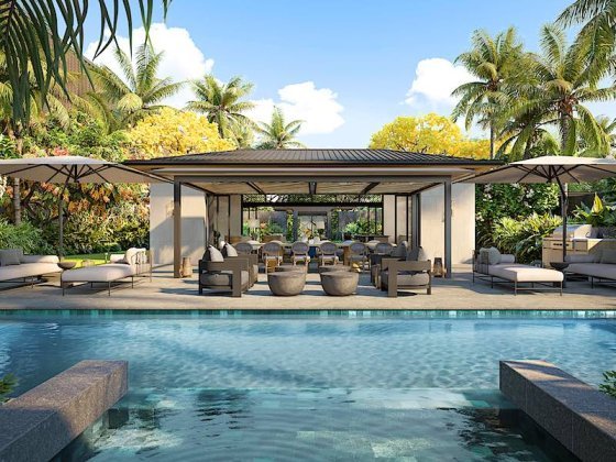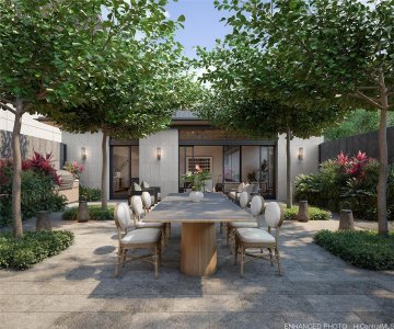 【アメニティー&コートヤード】 カラエで特徴的なのは、1階のロビーからダイヤモンドヘッド側に、50人から100人ほどを収容可能なそれぞれ雰囲気が異なる4つのコートヤードです。それぞれインドアとアウトドアスペースがあり、フルキッチン、アウトドアバーベキュー、テレビやエアコン付きのインドアでゆっくりと満喫できるスペースも設けられます。来客の方々はエレベーターを上がる必要がなく、まるで高級な邸宅に招かれた感覚に包まれることかと思います。