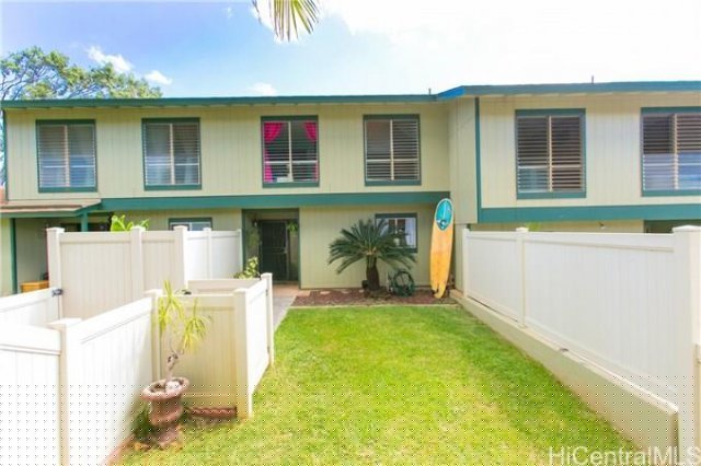 A tri-level townhouse recently upgraded. Immaculate hardwood looking tile floors in all bedrooms. Laminate wood in dining and living. Nicely painted, front and back yards fully gated. Two assigned covered parking stalls directly in front of unit. Townhome is located in Palehua Hillside, located down the street from the park. Pet friendly complex. All showings at 1st Open House - Oct. 23 2-5pm.