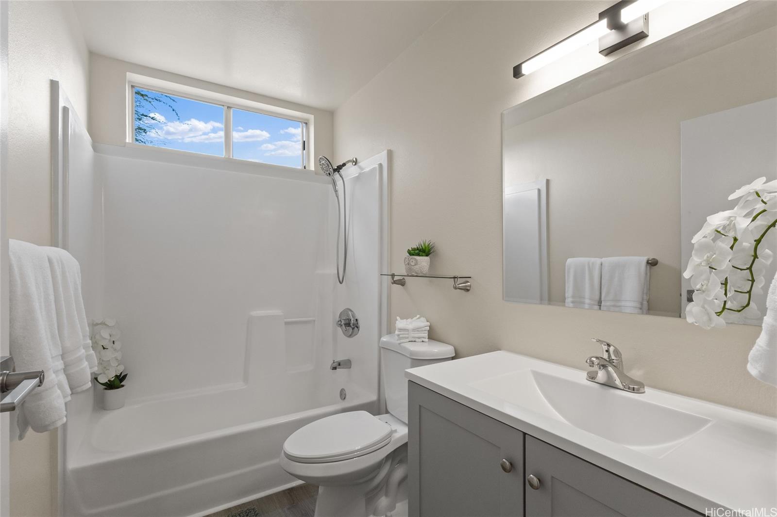 PRICE REDUCTION AND SELLER IS OFFERING CLOSING COST CREDIT. Make an appointment to see this well priced Condo. It's move-in ready and freshly updated, this charming 2-bedroom, 1-bath townhouse offers ocean views, cool Makakilo breezes, and a comfortable layout. The kitchen features new countertops, sink, faucet, range/oven, and flooring. The bathroom has also been upgraded with a new vanity, fixture, toilet, and modern flooring. Brand new bedroom windows allow natural light to flow through plus there is privacy with no rear neighbors! The sunny living area connects to the kitchen, creating a welcoming space. One assigned parking stall is included, plus convenient street parking right outside the unit. Located lower on Makakilo Drive for easy access, and just a short walk to the community park—great for pets, basketball, or relaxing outdoors. It's a short drive to all that Kapolei has to offer! This home combines function, comfort, and island breezes in a well-maintained community.