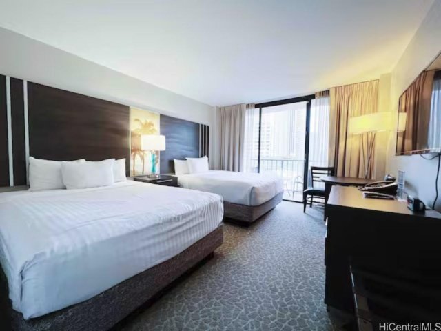 Fully renovated in 2020, this studio offers a stunning city view within the sought-after Palms At Waikiki. This turnkey short-term rental opportunity presents a well-managed "boutique" Condotel, ideally situated across from Fort DeRussy and the beach, with close proximity to Ala Moana Center. This unit boasts two beds, a full bath, a kitchenette, and an expansive lanai. Monthly maintenance fees cover all utilities, including central AC, electricity, internet, cable TV, water, and sewer, making it an ideal vacation getaway, investment property, or second home. Available now for immediate occupancy.