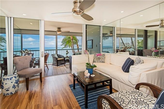 Exceptional 4th level Oceanfront Studio! Designed with top-grade materials and superb attention to detail. The Sans Souci is located across of world-renowned Kapi'olani Park with beachfront lanais overlooking Kaimana Beach and Waikiki City Lights. Sunset showings available.