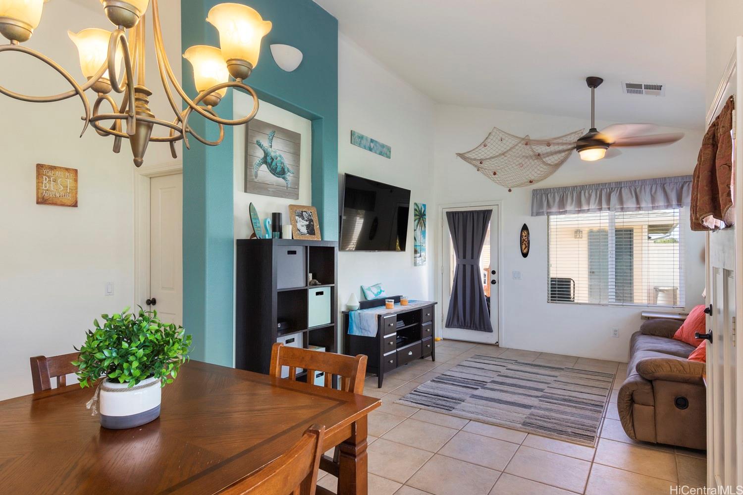 Rare Single Level end unit with bright grassy lawn out front. Open concept floor plan and vaulted ceilings create inviting spaces that make you feel right at home. Fully fenced private yard and extended covered lanai. Within steps to the pool with plenty of street and guest parking. Convenient commute to dining, shopping and fitness with nearby Ka Makana Ali’i Shopping Mall, the Kroc Center and the city of Kapolei.