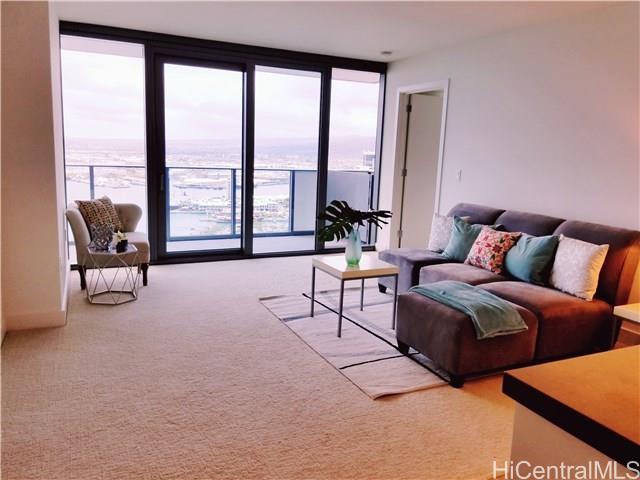Live, Work, & Play where the action is! Perched high up on the 40th floor of brand new bldg. THE COLLECTION! Enjoy sweeping unobstructed ocean, harbor views & watch ships sail by from the floor to ceiling windows. Bosch stainless steel appliances, quartz counter top, GE washer, dryer & 3 split AC units. Contemporary living, superb resort like amenities on the 7th floor, pool, gym, hot tub,BBQ, cabanas, & club room. 2 covered parking #4036 & 4038 & storage locker 4026. Short distance to Ala Moana, Ward, Aloha Tower, Chinatown, & more. Downtown living at its finest in the vibrant & exciting Kakaako.