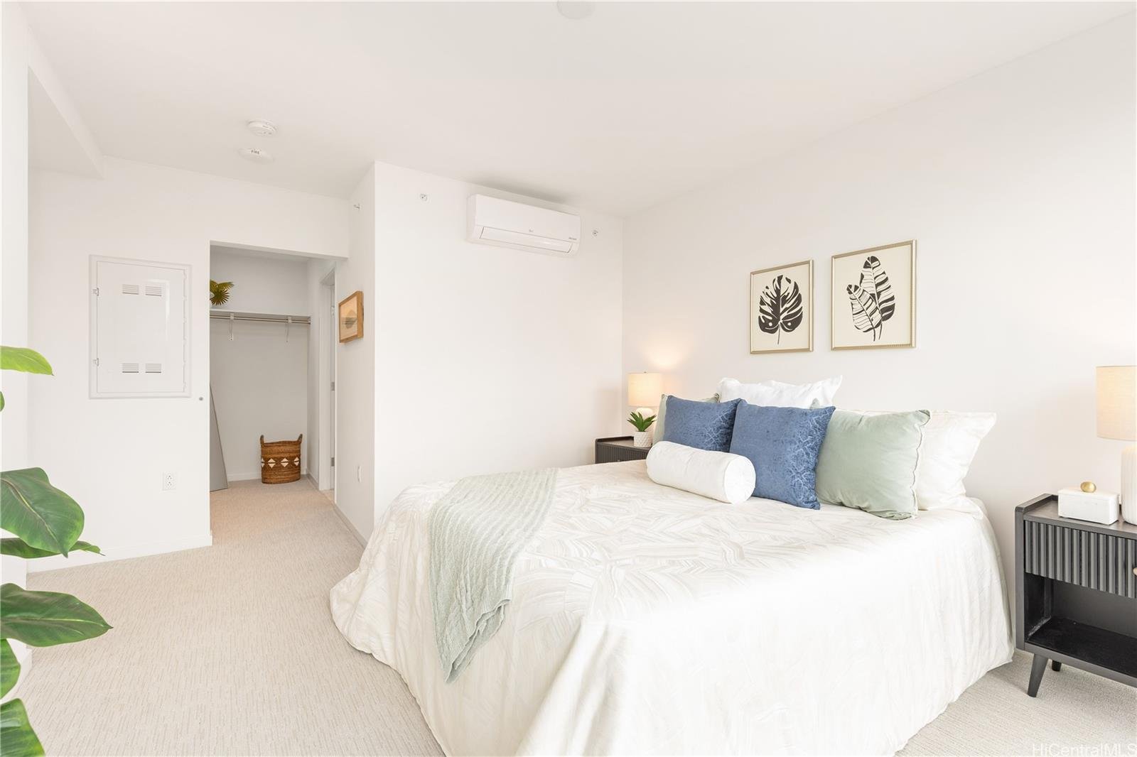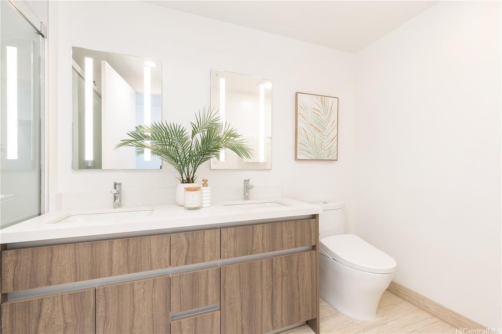 Live where you work and unwind like you're on vacation. Panoramic views, premium upgrades, and brand-new construction, move in today. Never-occupied 2-bedroom. 2-bath residence featuring stunning city, mountain, and ocean views from a 180-degree wrap around lanai with floor-to-ceiling windows. Owner invested in the upgrade pkg. $16k which includes luxury vinyl flooring in the entrance, hallways, kitchen and living room and carpet in bedrooms with motorized blinds and Toto Washlets. Includes split A/Cs in every room and a bright, open layout. Two assigned, covered, side-by-side parking stalls located near the entrance to the 6th floor.Resort-style amenities include an infinity pool, BBQ pavilions, sauna, dog park, theater room, fitness and yoga rooms, and club rooms for entertaining. Midtown Eats Food Court and playground on the ground level, with Walmart, Sams Club, Tous Les Jours Bakery, and Ala Moana Center nearby. A move-in-ready new constructions opportunity in a convenient urban location. Must see!