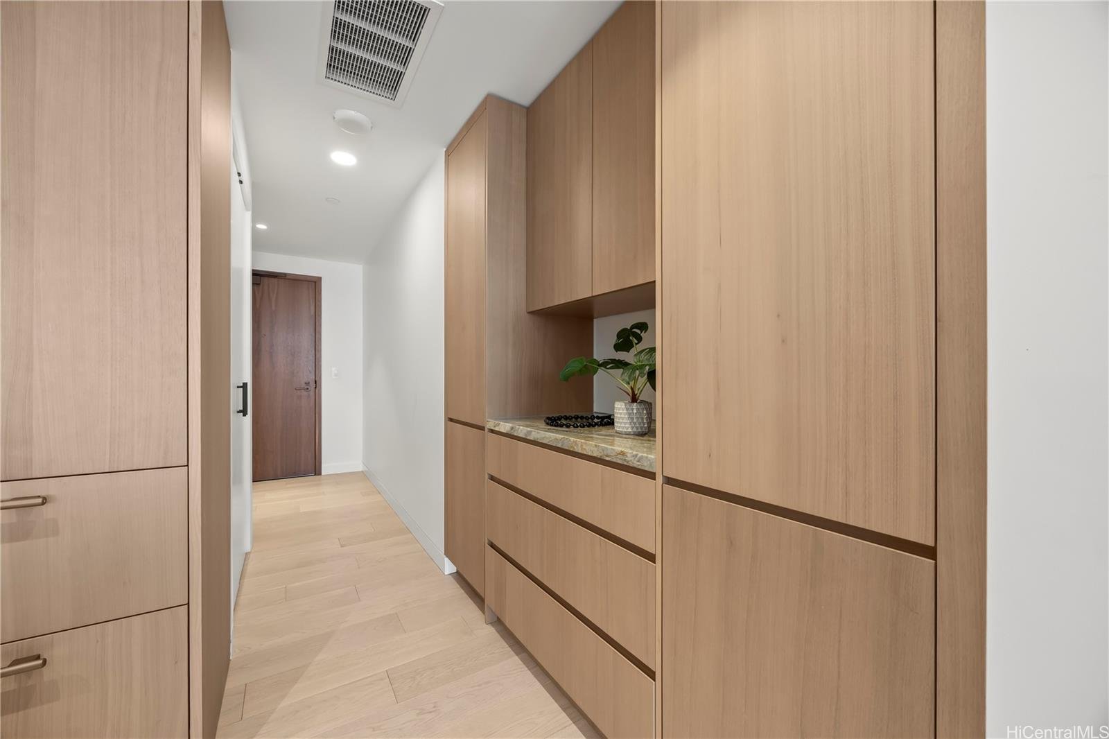 This stunning 2-bedroom, 2-bathroom residence situated on the 33rd floor of Victoria Place, the crown jewel of Ward Village. Unit #3303 offers a perfect blend of high-floor privacy and the vibrant Honolulu coastline. Spanning 2bed 2bath second row from the ocean, this residence features, premium appliances, and studio becker cabinet system the expansive floor-to-ceiling windows invite natural light open-concept living area, an, this residence features, premium appliances, and high end cabinet systems. Both bedrooms are designed as serene sanctuaries, with the primary suite offering breathtaking ocean views and a spa-inspired bathroom featuring premium finishes. Every detail in this unit has been thoughtfully crafted to provide the ultimate in modern luxury and comfort. As a resident of Victoria Place, you will enjoy unparalleled amenities, including the Lauhala Pool, infinity-edge sunrise and sunset pools, private cabanas, a state-of-the-art fitness center, and dedicated concierge services. Located in the heart of a walkable urban community, you are just steps away from world-class dining, shopping, and the golden sands of Ala Moana Beach.