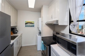 *Just Remolded 2025! Very special building for Waikiki Sky Tower, 4 unit pre floor, super privet and the most favorites' is 04 stack comer unit. *Very few unit in building as grandfather in enclosed lanai. *765 sf large one bedroom in central Waikiki! Pets allowed!! *remodeled unit top to bottom, no popcorn ceiling, hard wood floor, update pluming system. lots new cabinets storage. *large closet, remodeled kitchen, Lanai, bathroom, bedroom AC and Livingroom 12000BTU new AC. *large heated pool and man and woman separated sauna, shower and bathroom, 2 BBQ in building! Free of gas! huge space pool deck for working on your sun tanning. *fantastic investment property!