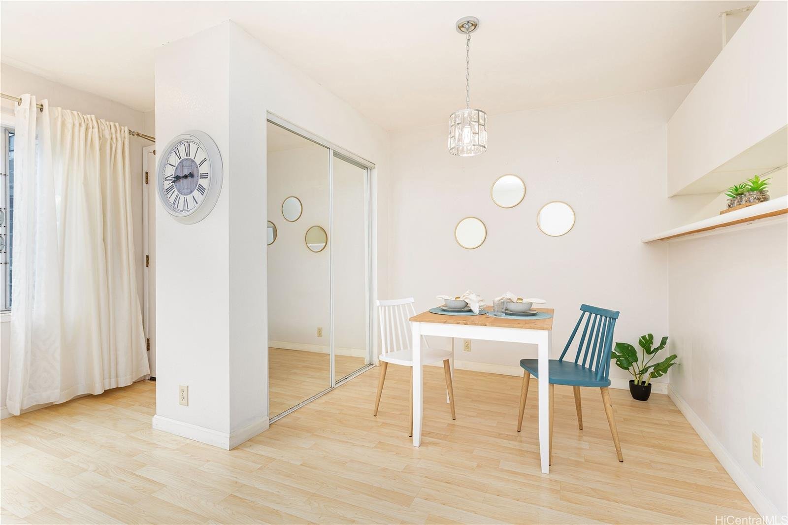 Price Reduced! Lovely 2 Bedroom, 1 Bath Townhome on the Second Floor Unit in the A Building. Owner occupied and well maintained. Bathroom was remodeled, laminate flooring and ceramic tile. Lots of closet space and built in bookshelves. Bedrooms face the Koolau's for cool breezes. Corner Parking Stall under Building near the stairway. Well Maintained Grassy Areas with open spaces. Great Location near Shopping, Restaurants, Windward Mall, and Businesses. Easy Access to the Likelike Freeway.